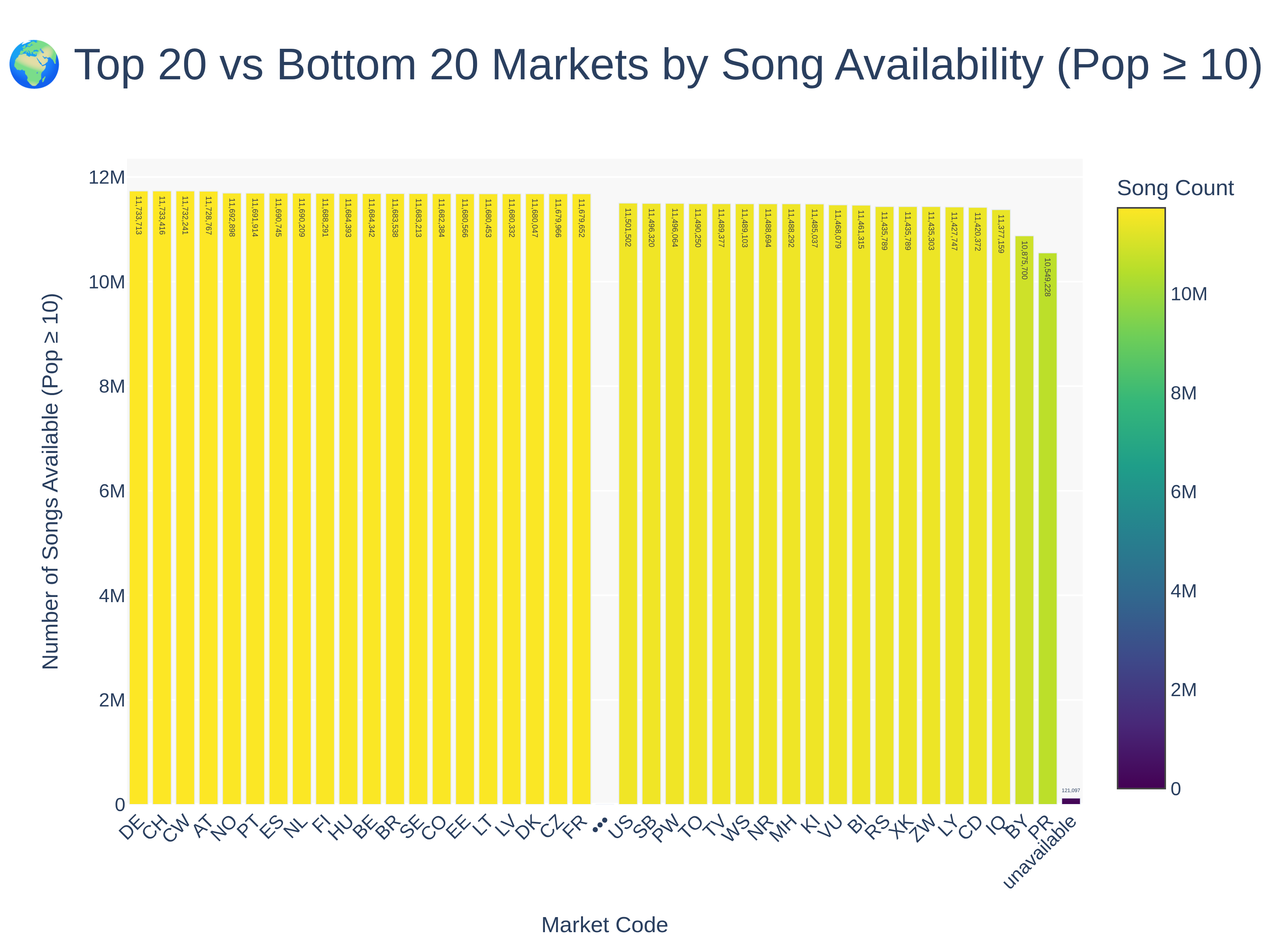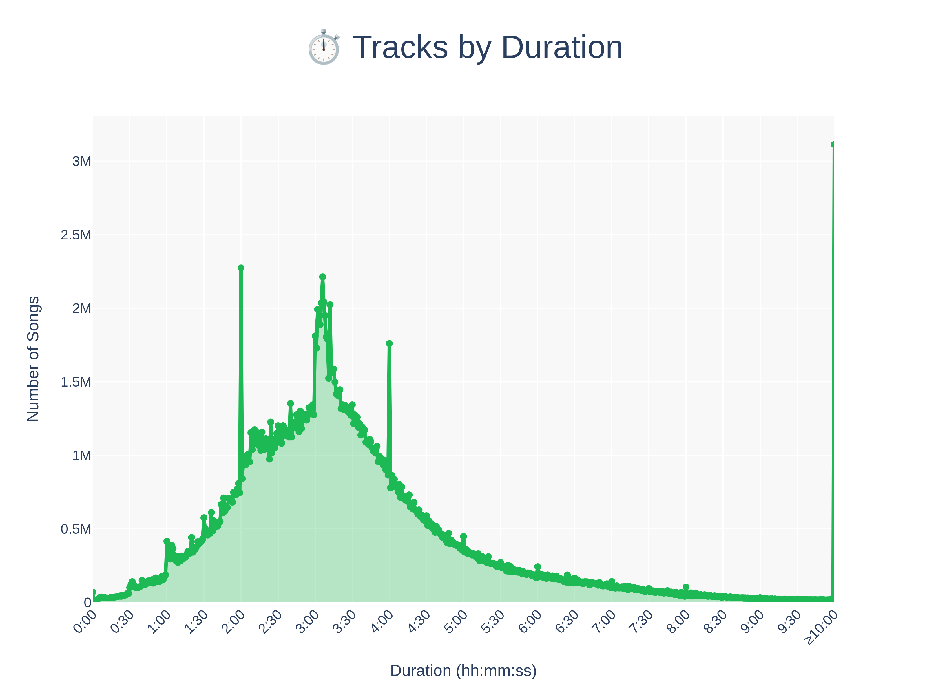 We have archived around 86 million songs from Spotify, ordering by popularity descending. While this only represents 37% of songs, it represents around 99.6% of listens:
